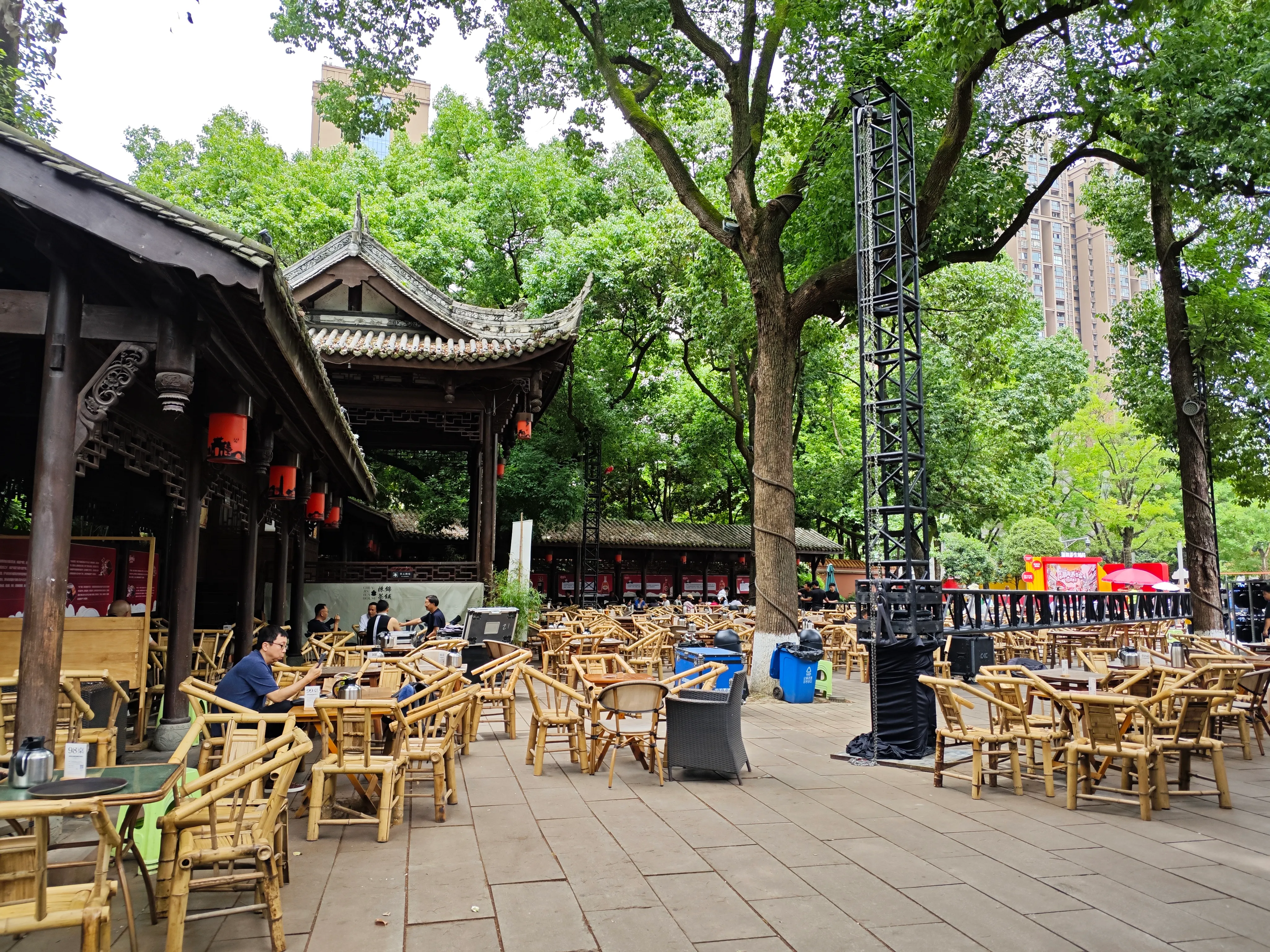 过了南二环,可以看到祟德园,一个著名的河边喝茶地。据说名气已经超过人民公园了。成都没有一条河能逃过河边茶铺,哪怕小到肖家河。这一带边上多是老旧的居民楼,第一层多为底商,所以形成了喝茶聚集地。新的小区不会有这情况了。